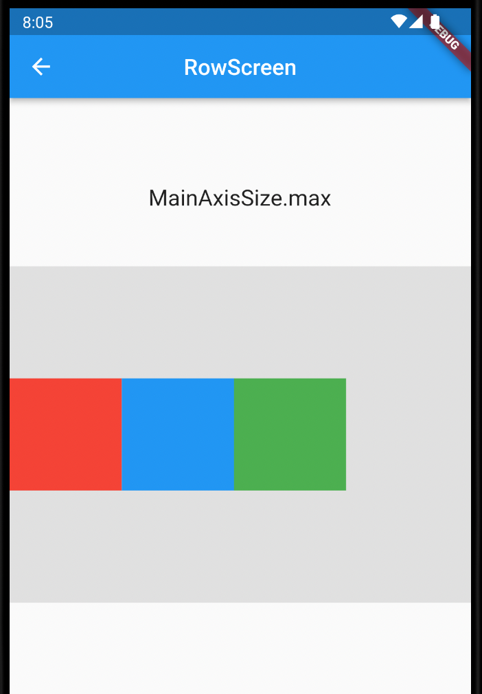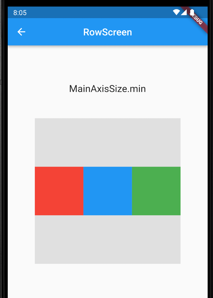 min은 Row의 자식 위젯들의 사이즈만큼 Row위젯을 최소화합니다. max는 Row의 부모 위젯 내에서 커질 수 있는 한 Row 위젯을 최대화합니다.