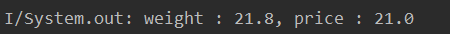 println("weight : $weight, price : $price")