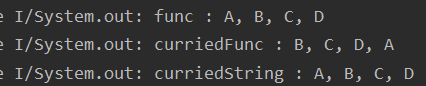 println("curriedFunc : ${curriedFunc<String, String, String, String>()(b)(c)(d)(a)}")